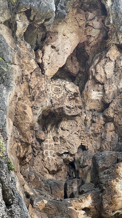 Petroglyphs and a lost (and found!) contact lens were the highlights of the canyon walk. Other than the scenery, company, and hearing a couple of new species of birds, that is. The birds, sadly didn’t make my life list. Even though Merlin captured an ID based on sound, if I didn’t see them, they don’t make the list. Thems the rules.