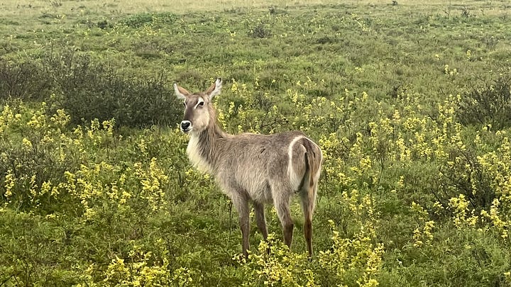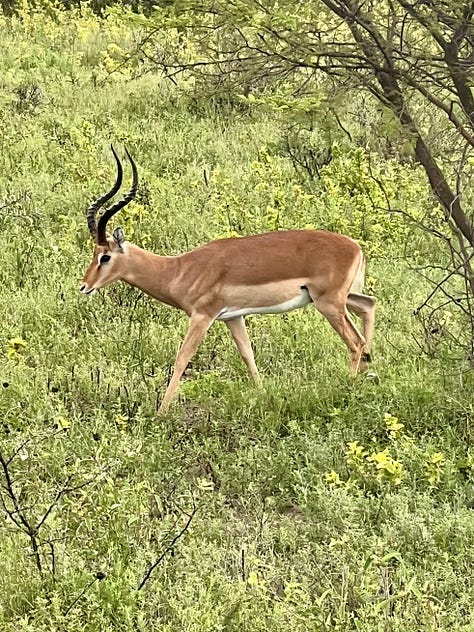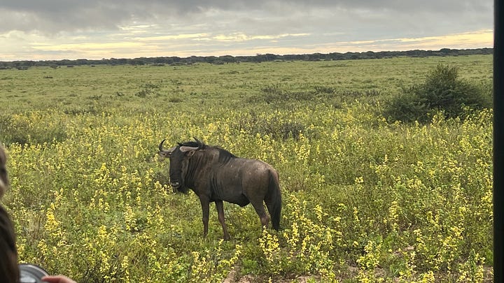 We had a super tight schedule (cue ominous music), so we didn’t have to break down the tents ourselves, just pack our belongings, and head out for a replacement safari drive for the one we missed the night before. Sadly, we got skunked on the namesake of the sanctuary. No rhinos. But we did see some cute gnus. (Here’s where you do your own fave gnu pun. In your heads please. We don’t need others thinking you’re loco.)